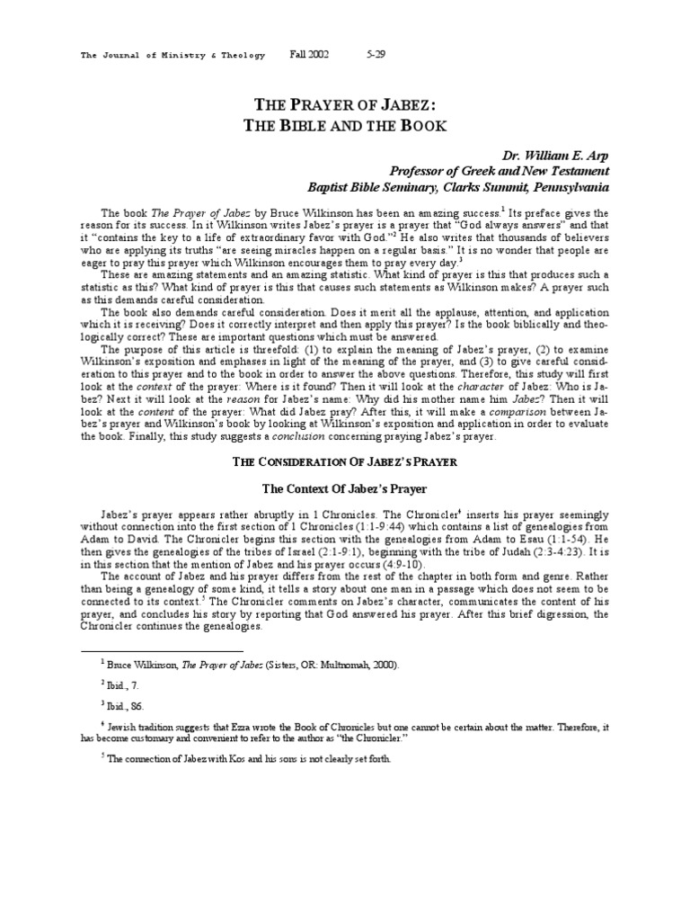 Yet the prayer reveals to us an amazing revelation. Jabez And His Prayer 2 C. He is known only by his prayer.